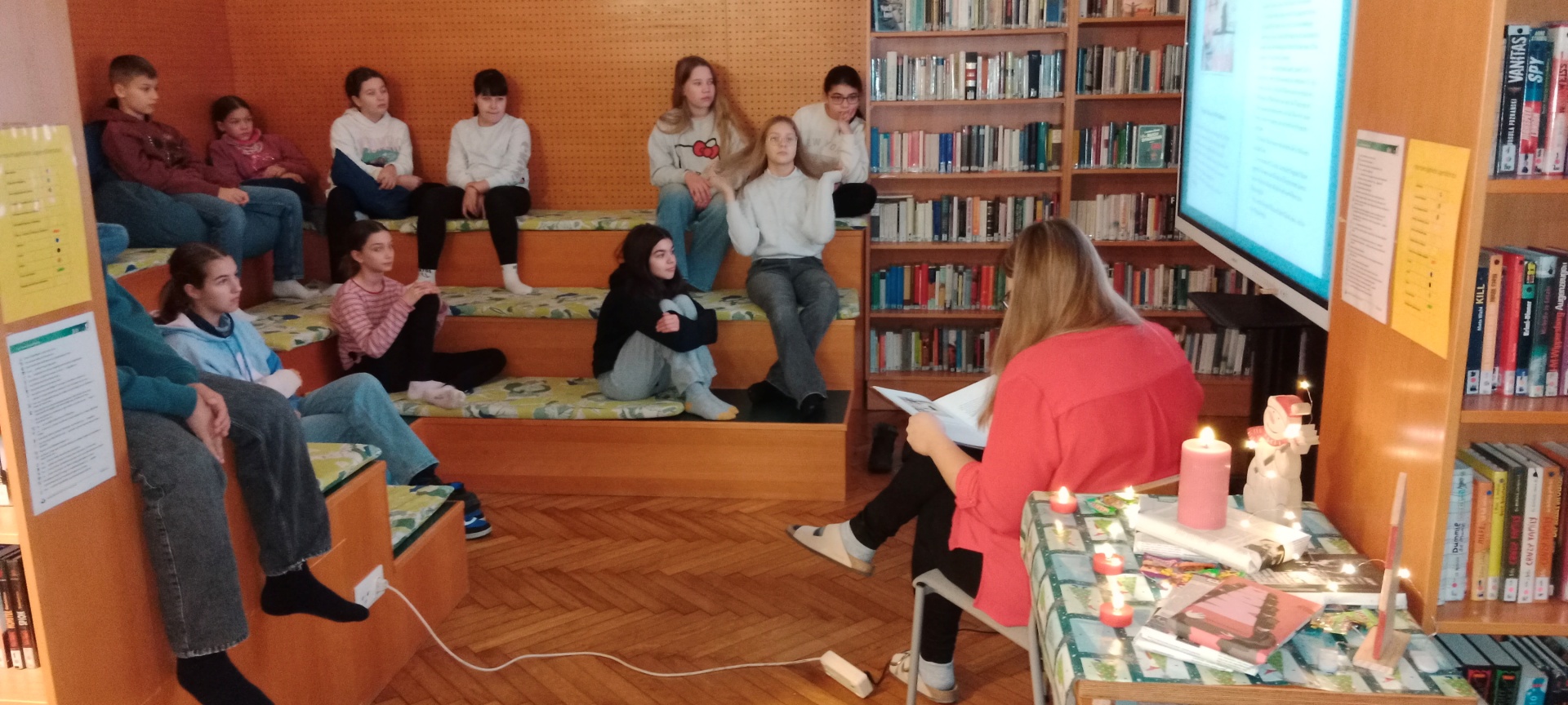 Dieses Schuljahr ließen sich die Bibliothekarinnen Prof. Höbarth und Prof. Decker etwas Besonderes einfallen. An vier Terminen wurde in der Vorweihnachtszeit in der Bibliothek aus lustigen und besinnlichen Büchern vorgelesen.